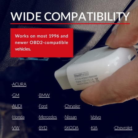 - Працює з усіма OBD-II сумісними автомобілями